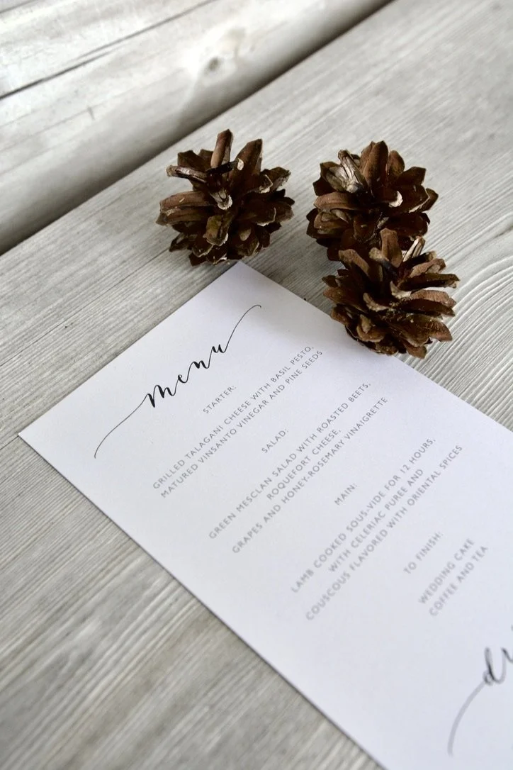 Lisäksi tuotevalikoimaan kuuluvat skandinaavisen tyylikkäät ja pelkistetyt häiden paperituotteet, jotka ovat saaneet inspiraationsa pohjoismaisesta designista ja upeasta pohjolan luonnosta.